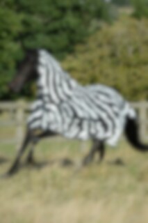 Buzz-off & neck Zebra is a zebra-colored fly rug that is designed to protect your horse to the maximum from stinging and biting insects. The zebra pattern is developed to confuse annoying insects that due to the black / white pattern can not land on the horse. At the inside by the shoulders, the fly rug has a silky lining to prevent chafing and the upper part of the tail is covered by a tail patch. The neck is removable, which means you can choose to wear it on or off.