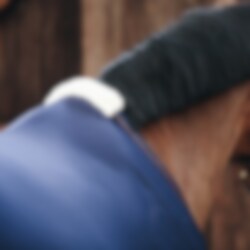 Designed with both style and functionality in mind, this elegant cooler rug features removable surcingles, allowing it to be used as a traditional fleece rug or a stylish show rug. Luxurious leather details, artificial sheepskin at the withers, and refined front closures enhance its sophisticated look.