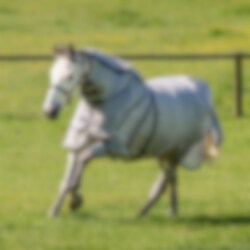 This Rambo fly rug somes with bib-front closure, an included extended detachable hood, three straight surcingles, dual leg arches, and PVC tail cord.