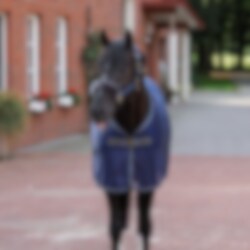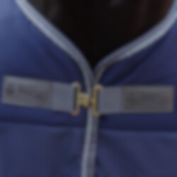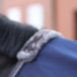 The cooler rug features faux fur at the withers, T-bar front closure, internal deatachable cross surcingles and a fillet string. The design of the rug is sophisticated and elegant keeping with Buca's Show-Line range, navy blue with faux fur and contrasting piping.