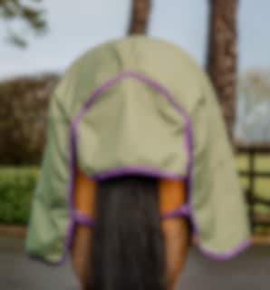 This turnout rug from Horseware features a classic design with two front fastenings, cross surcingles, and a tail flap. A detachable neck cover is included.