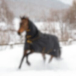 The Irish Turnout Set from Bucas is a black 50g outdoor rug with a detachable neck, designed for optimal comfort and protection.