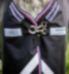 The Rambo® Supreme Turnout features an anti-bacterial, anti-static, and shine-enhancing lining and comes with a wipe-clean tail cord, reflective strips, and three removable surcingle with the Rambo® Safety Surcingles System.