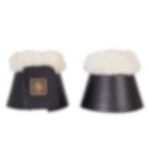 Stylish and practical over reach boots in black synthetic leather with a soft sheepskin trim. Lining of Neoprene fabric and fitted with wide Velcro fasteners. We stock these boots in black and white, sizes L and XL. Other sizes are available upon request. Sold in sets of two. Tips to keep the sheepskin fluffy after washing: Tumble dry your over reach boots at a low temperature for a short while. NB! Your boots may get damaged if you tumble dry them for too long or at a temperature that is too high!