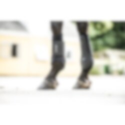 Brushing boots with double velcro closure that holds the protector in place. These Catago brushing boots work great during exercise or as protection in the pasture. The protection has a good fit and protects the horse's legs thanks to the hard outside. Nice Catago logo on the velcro strap.