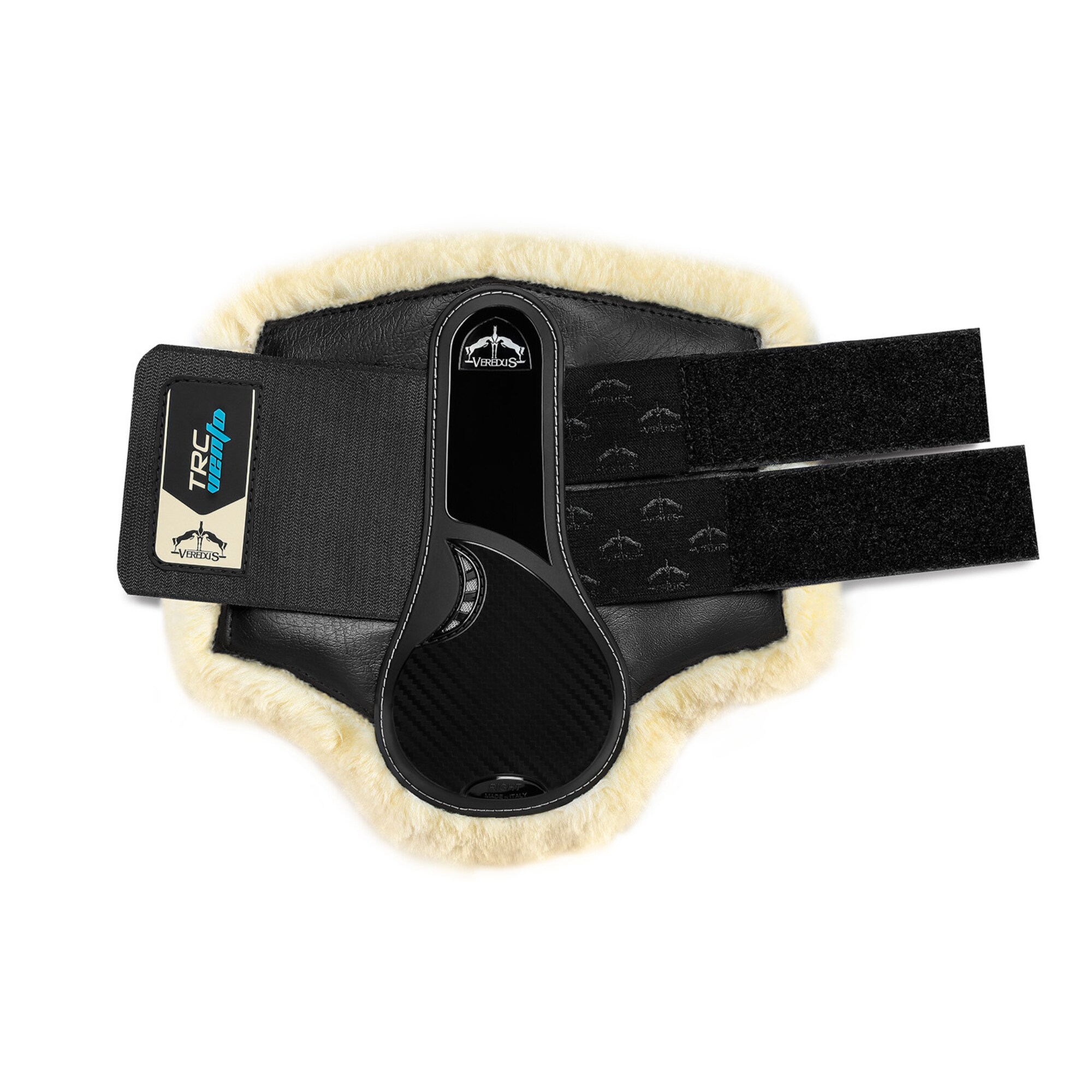 - Enveloping front boots protecting fetlocks and upper cannon bones