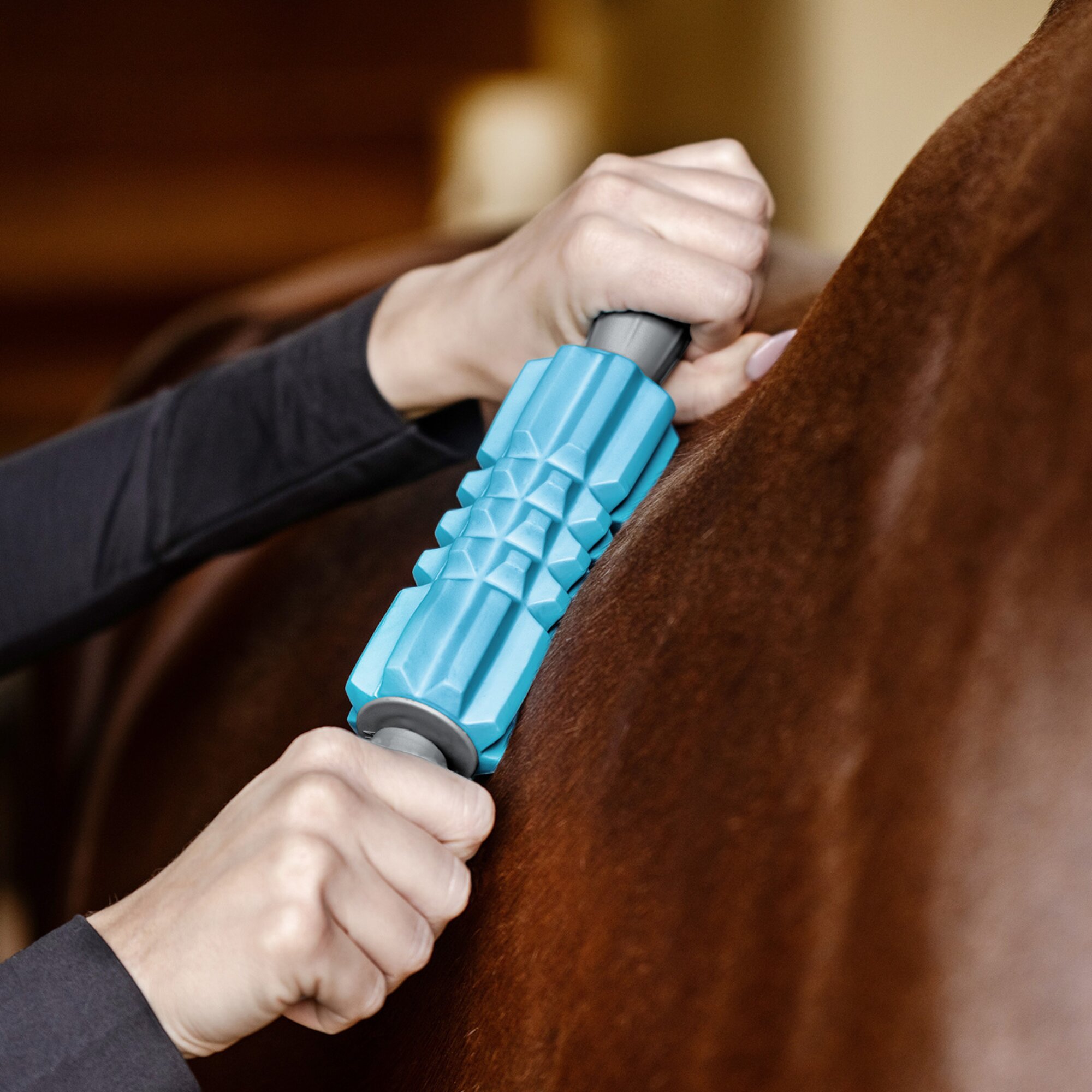 The unique structure promotes elasticity of the connective tissue and may contribute to improved mobility in the horse. It is especially suitable for the large muscle groups along the back, croup and hindquarters. Thanks to its deep-reaching effect, it is an excellent choice after intensive training sessions or in cases of chronic stiffness.