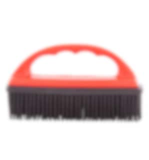 Convenient and effective brush for removing dirt and hair from rugs, blankets, and saddle pads.