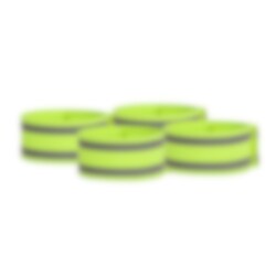 An elastic and soft reflective band in neon yellow with a simple and solid velcro fastening.