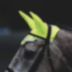 Neon yellow reflective ear net for horses.