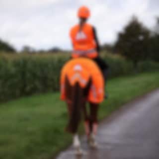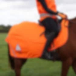 The exercise sheet is available in orange with reflective strips on each side of the horse’s rear.