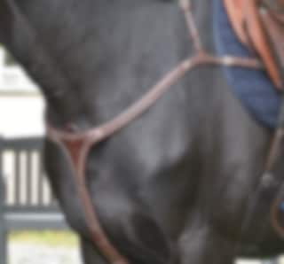 This breastplate has very beautiful details in the form of white stitching, brass buckles and a luxurious E-logo in brass on the left side.