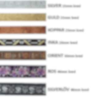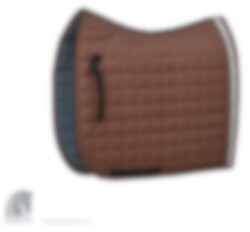 Choose and specify the order of your preferred colours starting with the decorative ribbon followed by the piping and edging - i.e. from inside to outside. Edging and decorative ribbons are available in matching colours unless otherwise specified. Choose among a large variety of colours for your Mias saddle pad, piping and edging.