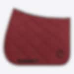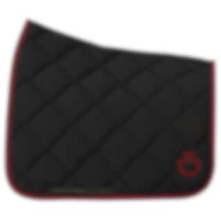 This dressage saddle pad from Cavalleria Toscana is incredibly stylish with large quilted squares. The Diamond Quilted Jersey dressage saddle pad is stylishly combined with a black base colour and Bordeaux-coloured piping, and features a CT logo in matching Bordeaux and a black spine channel with the Cavalleria Toscana branding there as well.
