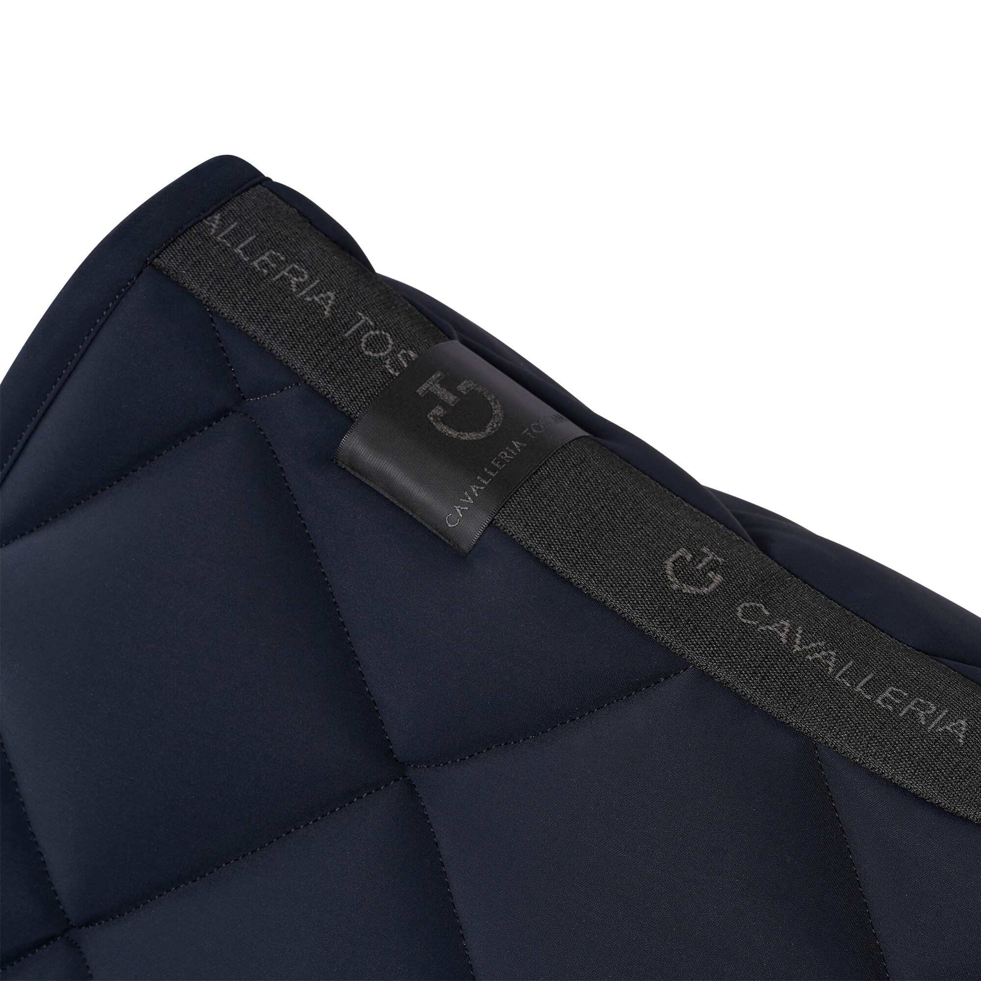 The Diamond Quilted Jersey Jumping Saddle Pad comes in a beautiful dark navy color and features a white CT logo and a black channel along the back with the Cavalleria Toscana logo as well.