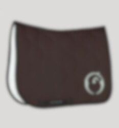 This saddle pad is brown with black edge and beige logotype. Perfect when you and your horse want to look extra good!