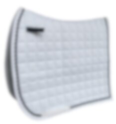 A perfect saddle pad for the dressage competition in white with navy and silver details.