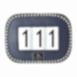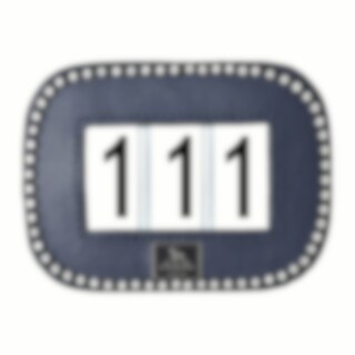 The competition number holder has rounded corners and a stripe with clear crystals runs around the entire edge on a navy blue background. The number holder has 3 digits so you can use numbers from 001-999 and is easily attached to the saddle pad with the associated safety pin.