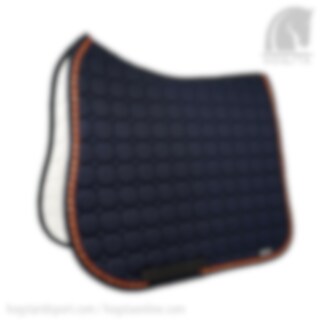 Equiline Octagon Dressage Saddle Pad – Navy Blue with Brown/Brick/Bronze Glitter Piping.