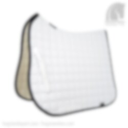 Equiline Octagon Dressage Saddle Pad – White Design with Navy Blue Edging, the perfect Competition Saddle Pad!