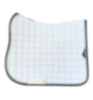 Equiline Octagon Dressage Saddle Pad – White Design with Navy Blue Edging, Silver Glitter Outer Piping and Blue/White/Silver Glitter Outer Piping, the perfect Competition Saddle Pad!