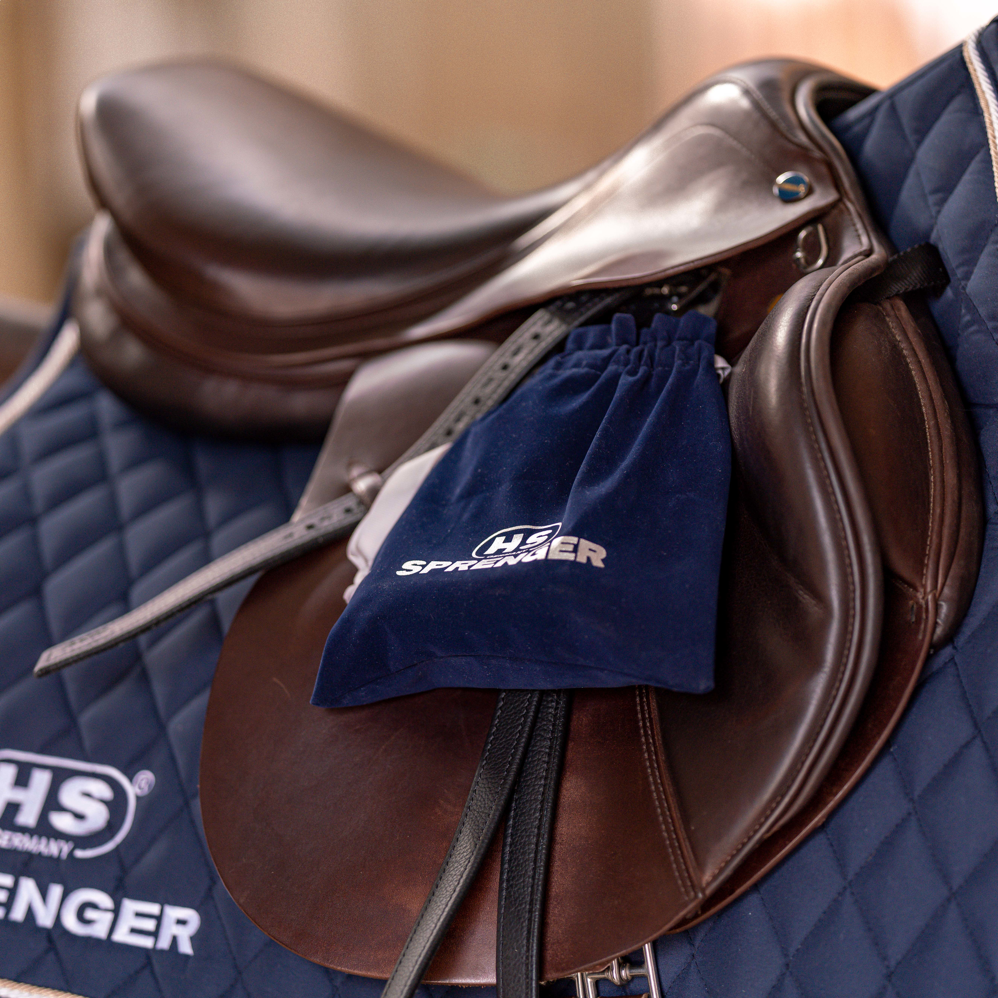 Super nice stirrup protection in fine velvet from Herm. Sprenger. Navy