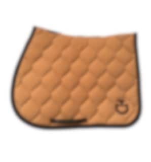 CQ Jersey Jumping Saddle Pad is stylish and elegant with a really stylish and nice quilt. This saddle pad is in a perfect gold color and has a black CT logo, black edge band and a black channel on the back with Cavalleria Toscana branding there as well.