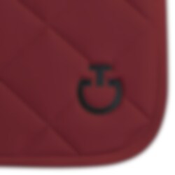 The Diamond Quilted Jersey Jumping Saddle Pad comes in a beautiful red color and features a black CT logo and a black channel along the back with the Cavalleria Toscana logo as well.