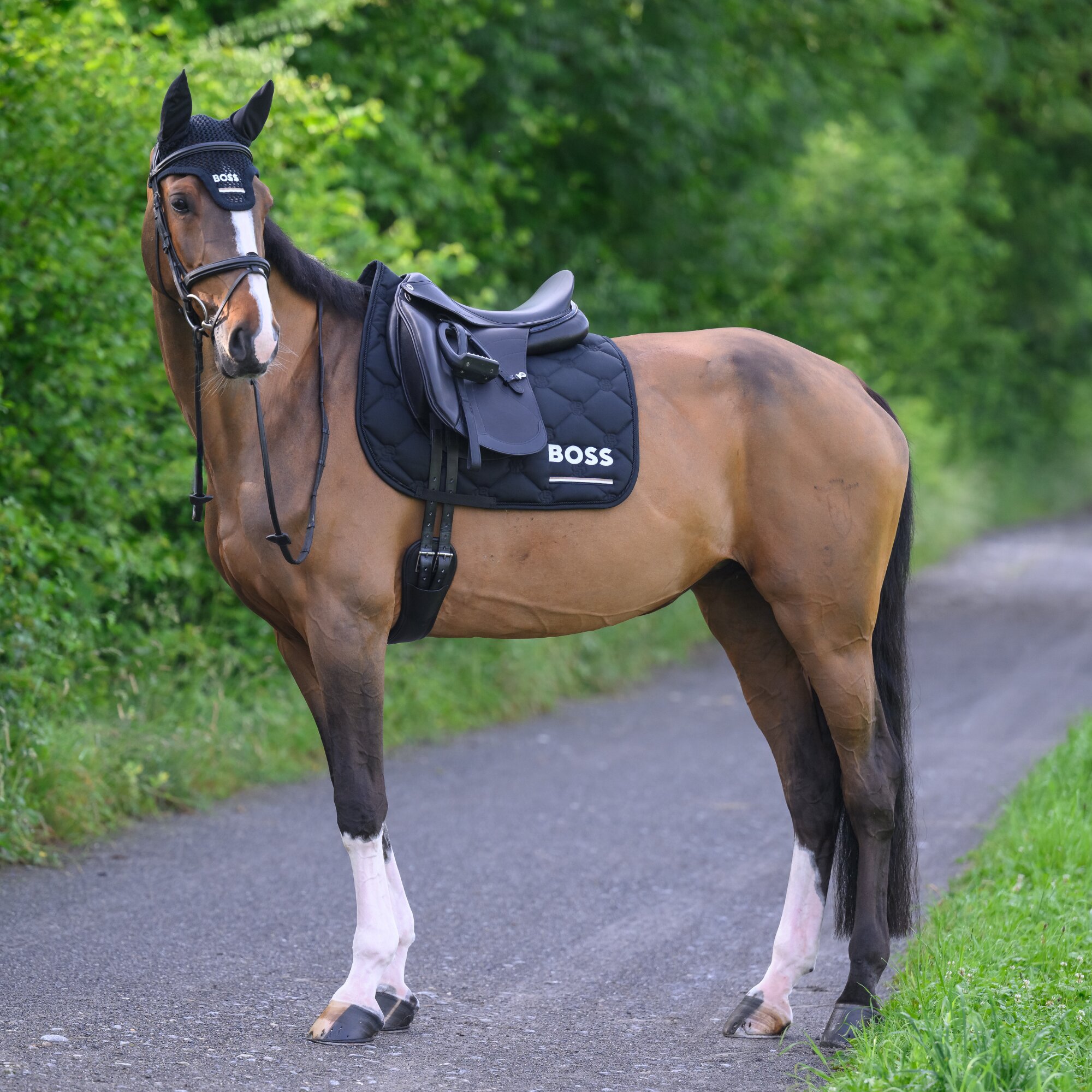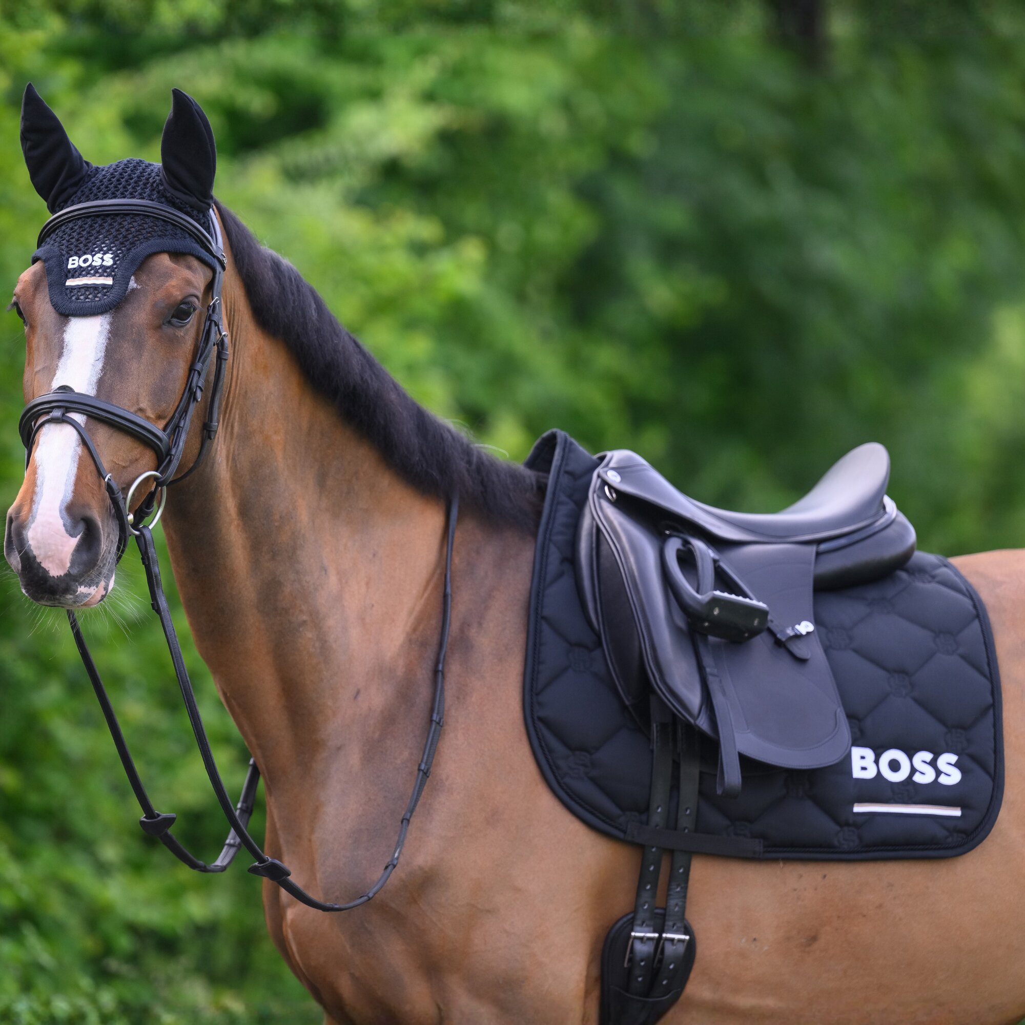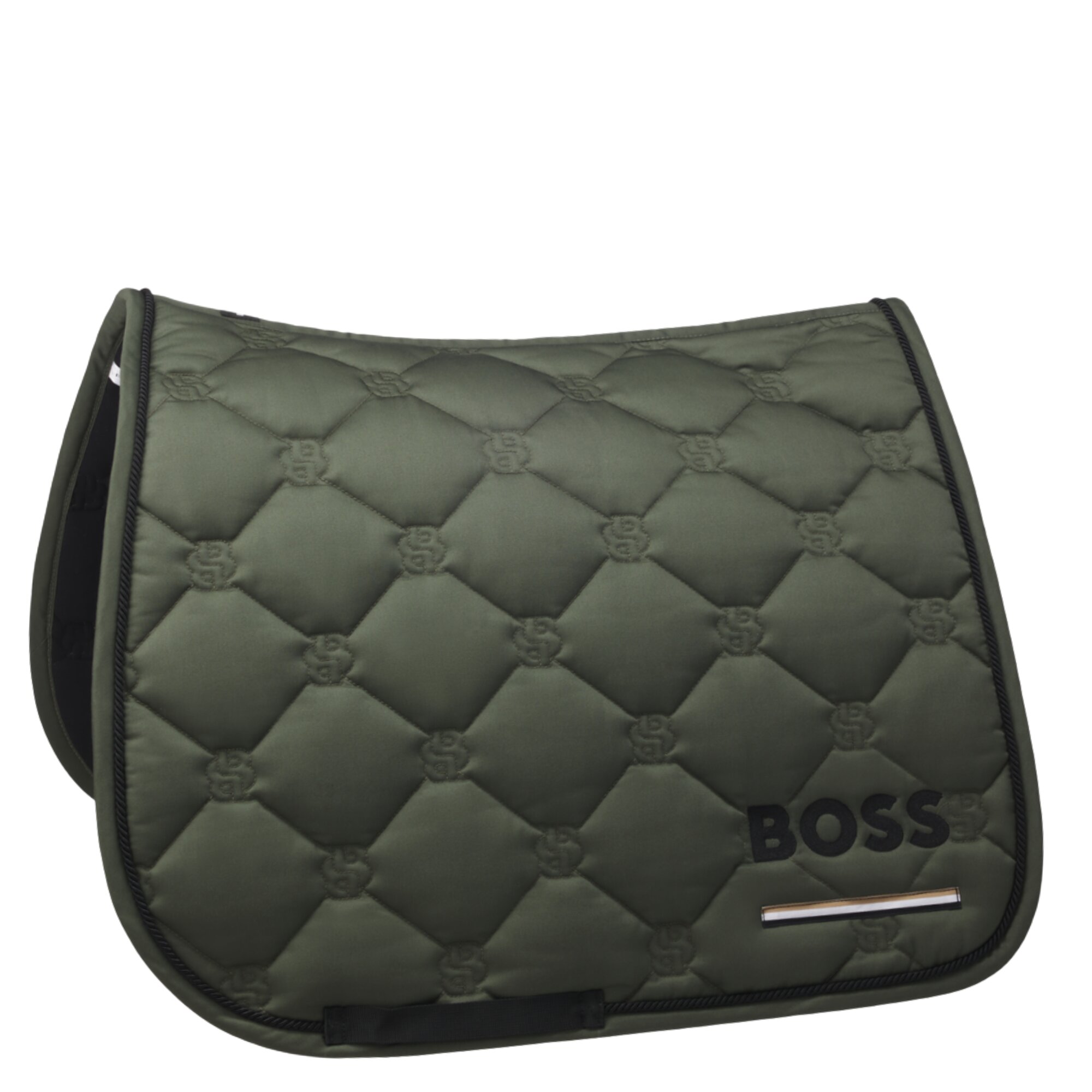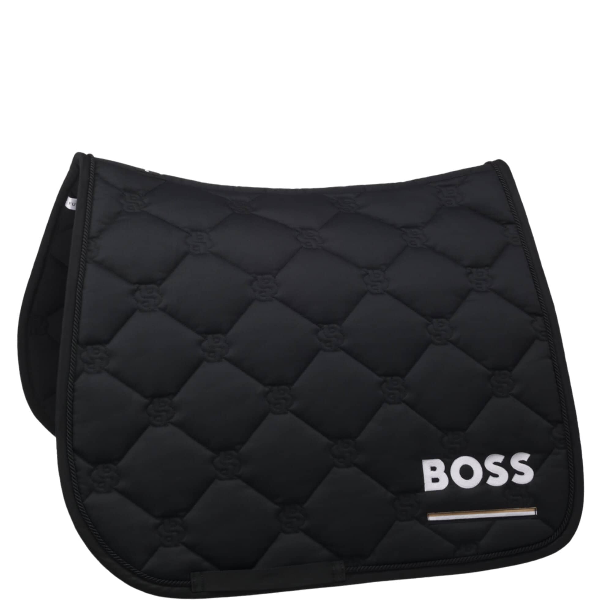 This exclusive Cambridge Dressage Saddle Pad from BOSS Equestrian is made from a durable material blend and the quilting is designed in the iconic Double B pattern. This dressage saddle pad comes with the BOSS logo together with the classic signature stripe underneath.