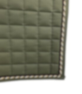 An extremely nice and stylish dressage saddle pad from Mias RS in olive color with piping in gold and gold/brown/pearl. The saddle pad has large squares (5x5cm) and, like all saddle pads from Mias RS, has a very high quality and fit.