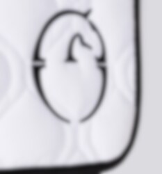 This shabrak is Optical White with a black edge and logo. Perfect when you and your horse want to look extra good!