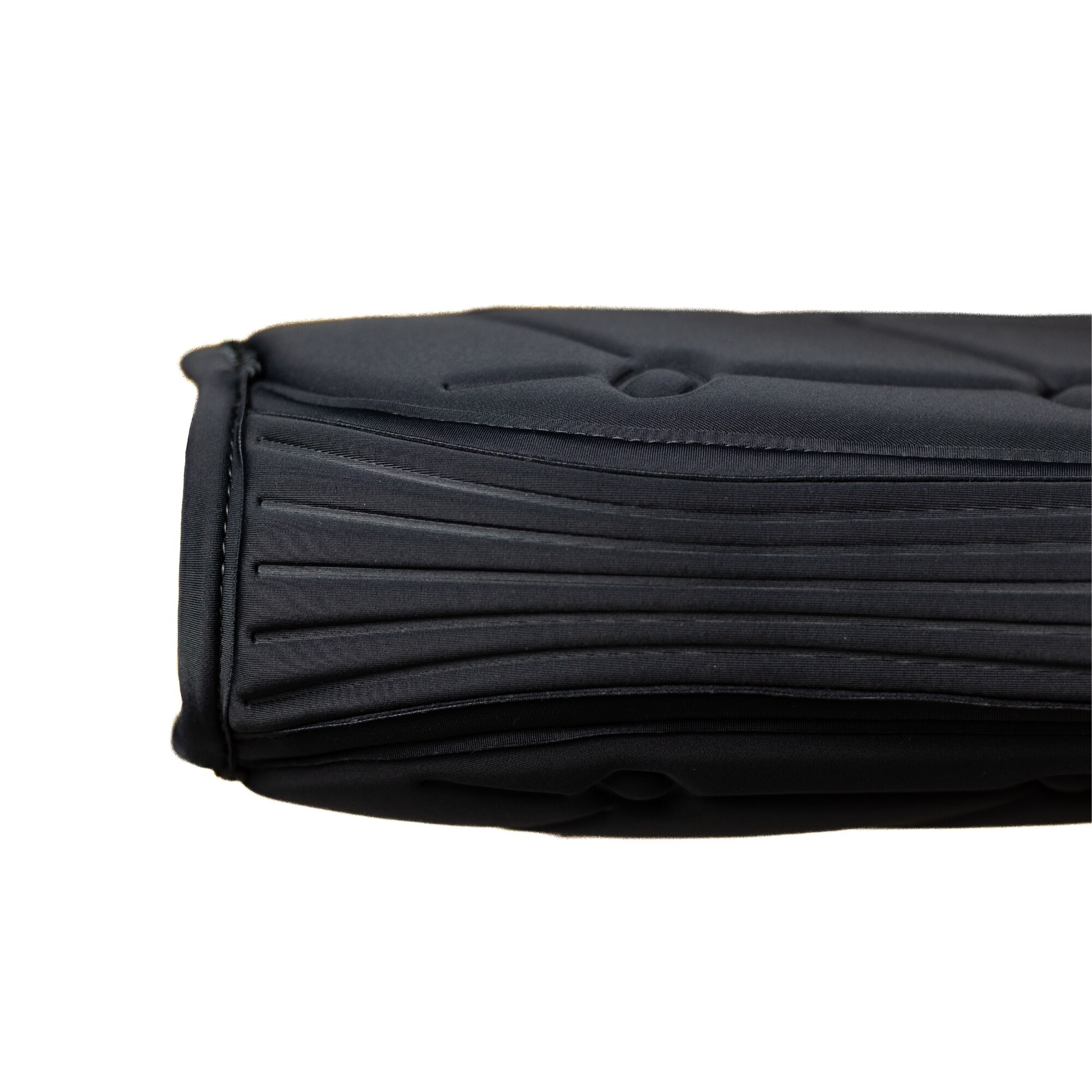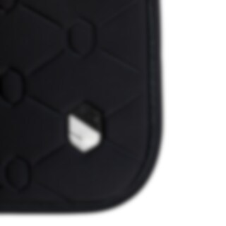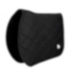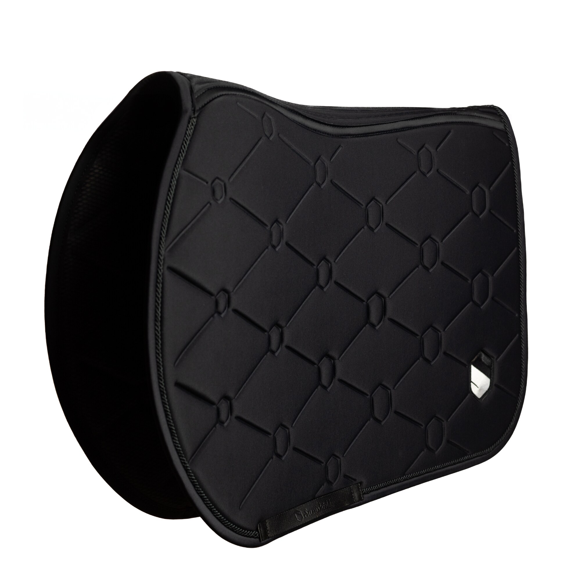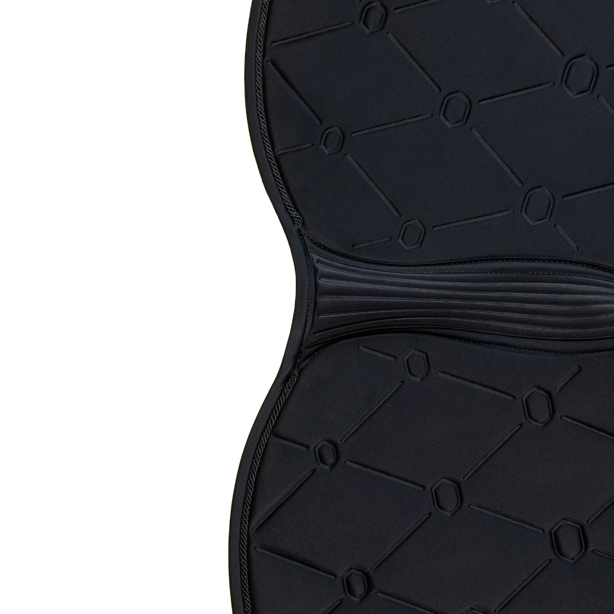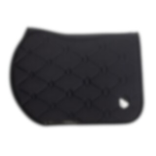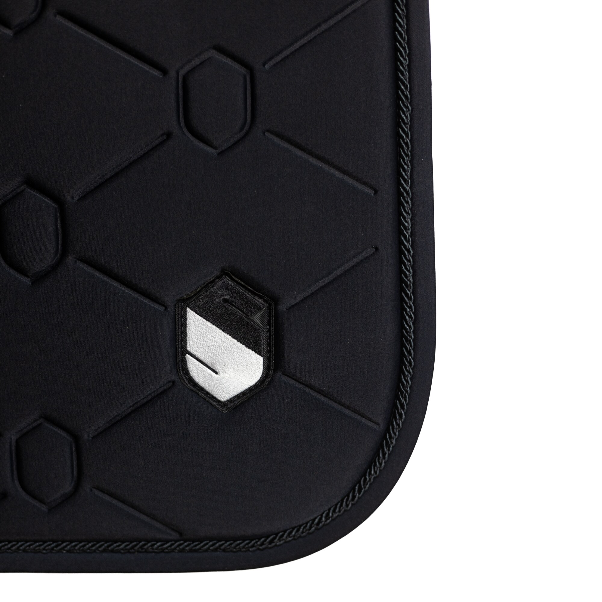 Luxury Black Jump Saddle Pad from Samshield with Exclusive Details. Anatomically shaped for optimal comfort, shock-absorbing materials, and a perfect fit.
