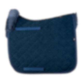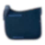 The sheepskin saddle pad is navy with blue sheepskin and features a beautiful piping along the edge of the pad.