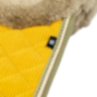 The sheepskin saddle pad comes in curry with schlamm sheepskin and two beautiful piping details along the edges.