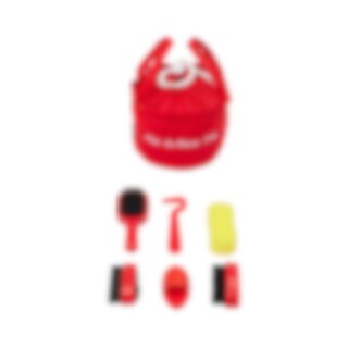 The set includes soft brushes, curry comb, sponge, mane and tail brush, and hoof pick – all in miniature size and perfectly suited for your Toy Pony. The practical zipped grooming bag makes it easy to take the kit on the go or store it neatly when not in use.