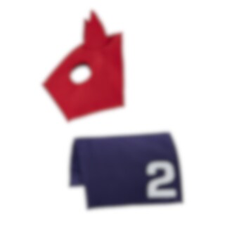 The elegant satin blue racing cloth with number 2 gives your pony an authentic race day look, while the stylish red hood fits comfortably under the bridle and helps your pony stay calm and focused before the start.