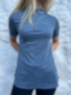The riding shirt Dasha is a piqué with Pikeur printed on the left side of the chest, the riding piqué is slightly longer with two slits on the side, which makes it reallu nice to ride in.