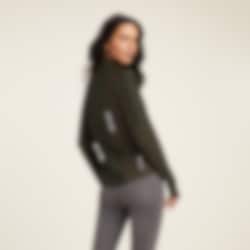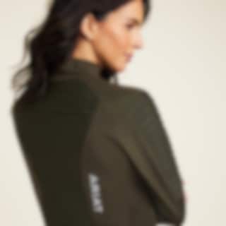 This functional sweater from Ariat is very strechy and comfortable, it keeps you warm and dry during the day. The riding sweater has nice details, sewn stripes on the back and on the sleeves. You will find the Ariat logo on the front and on the back of the riding jersey. Facet fleece from Ariat also has a very smart detail on the cuffs, a hole which enables you to keep track of the time on your watch.