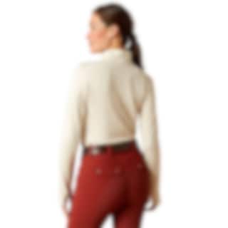 Prophecy is a stretchy and good looking riding shirt in a functional material from Ariat. This riding shirt has a nice sand beige colour with patterns of bits which makes this shirt unique. Prophecy functional shirt has 1/4 zipper on the front with a high collar. The Ariat-logo is labeled on the chest in matching silver with the zip.