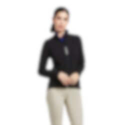 This riding jacket is in softshell paired with high-stretch recycled polyester blend. Andes Softshell has a full two-way zipper and pockets with zippers. The riding jacket is wind and water resistant which makes it perfect as a thinner jacket to use both in the stable and during training with the horse.