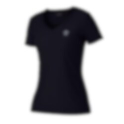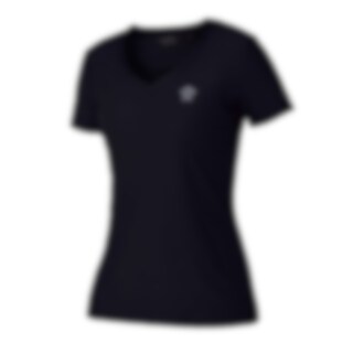 The T-shirt is black with V-neck and stylish Kingsland logo in silver on the left chest.