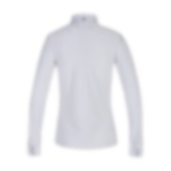 This competition riding shirt for junior is super elegant with soft and stretchy material and amazing details in silver. The collar closes with a nice button and four more hidden buttons. The competition shirt has a Kingsland logo in silver on the chest and at one cuff that also closes with two buttons.