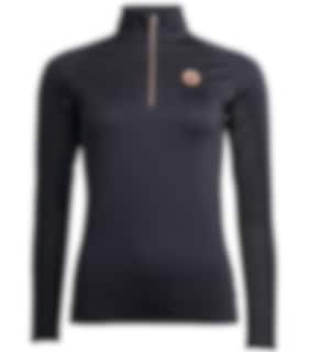 KLstarla is a stylish and comfortable functional shirt in a navy color with nice details in rosé. The riding shirt has 1/2 zipper and high collar. This is the perfect shirt for stable work, riding or training as it is made in a high quality, quick drying fabric that is breathable.