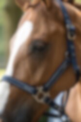 The practical halter from Lami-cell has buckles at the neck and under the chin, which allows you to easily adjust the size of the halter. The halter is made of polypropylene and is in a classic navy color with darker silver buckles and for the best comfort, the halter is lined with a soft synthetic suede.