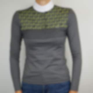 The shirt is made of a sand-colored fabric that is printed over the chest with small yellow horses, a very nice detail. The collar is white and on the left chest is a discreet and decorative ANIMO logo.