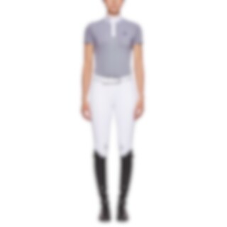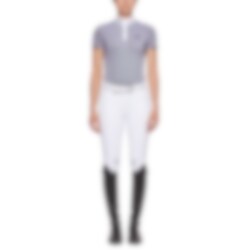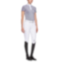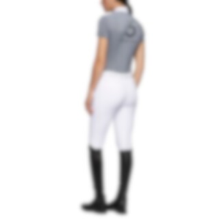 S/S Competition Polo is a competition shirt that stands out from the crowd with it's cool look. The shirt has small squares all over, which gives a elegant look. The competition shirt has a withe collar with Cavalleria Toscana embroidered on it. On the left side over the chest and on the back, the Cavalleria Toscana's team logo is printed.