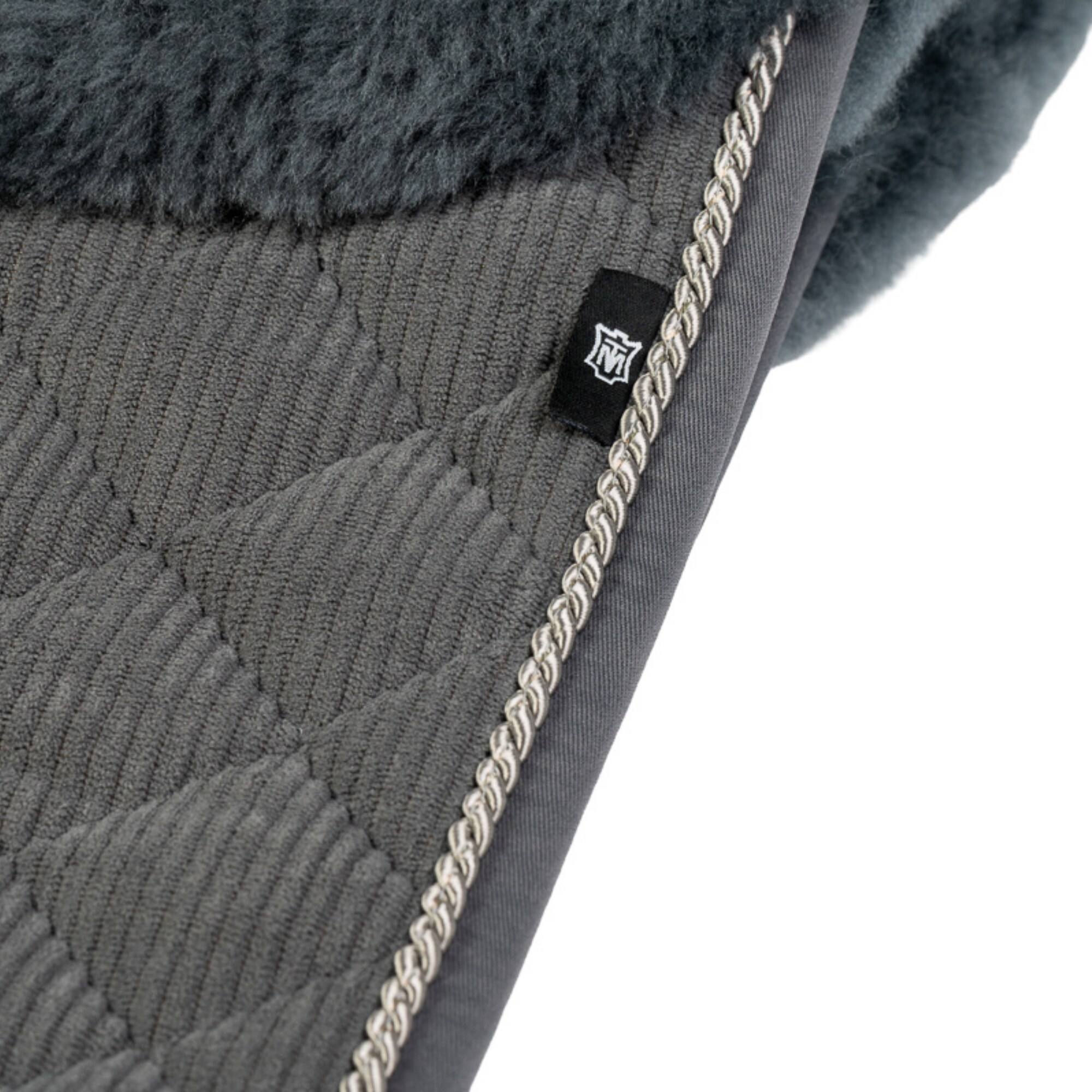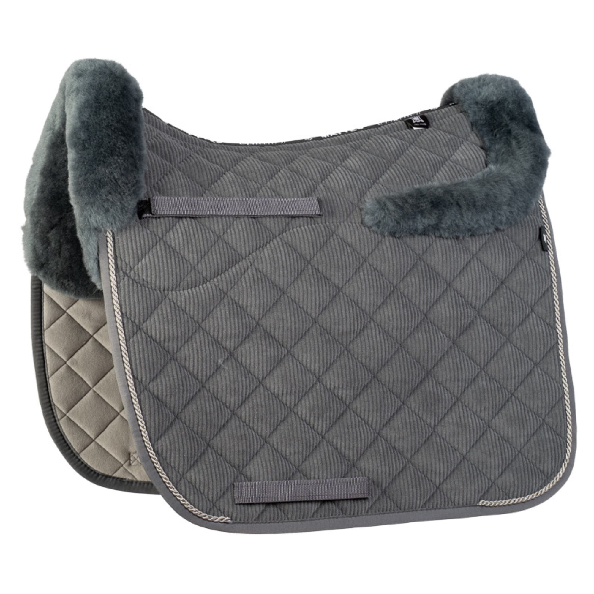 The sheepskin saddle pad comes in graphite with dark grey sheepskin and one beautiful piping detail along the edges.