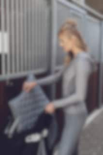 This bag is perfect to use at a competition or in the stable. The competition bag has handles to carry the bag with, three hooks both on the front and back that are perfect for hanging things in. The bag has a strap for attaching a saddle pad at the back and has room for up to 5 saddle pads, or what else you want to fill the bag with!