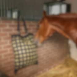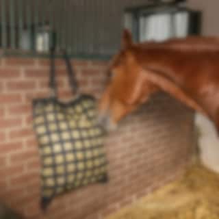 Hay Net with 5x5 cm Holes for Slow and Gentle Forage Feeding. This hay net promotes calm and healthier eating behaviour while preventing your horse from scattering hay on the ground.